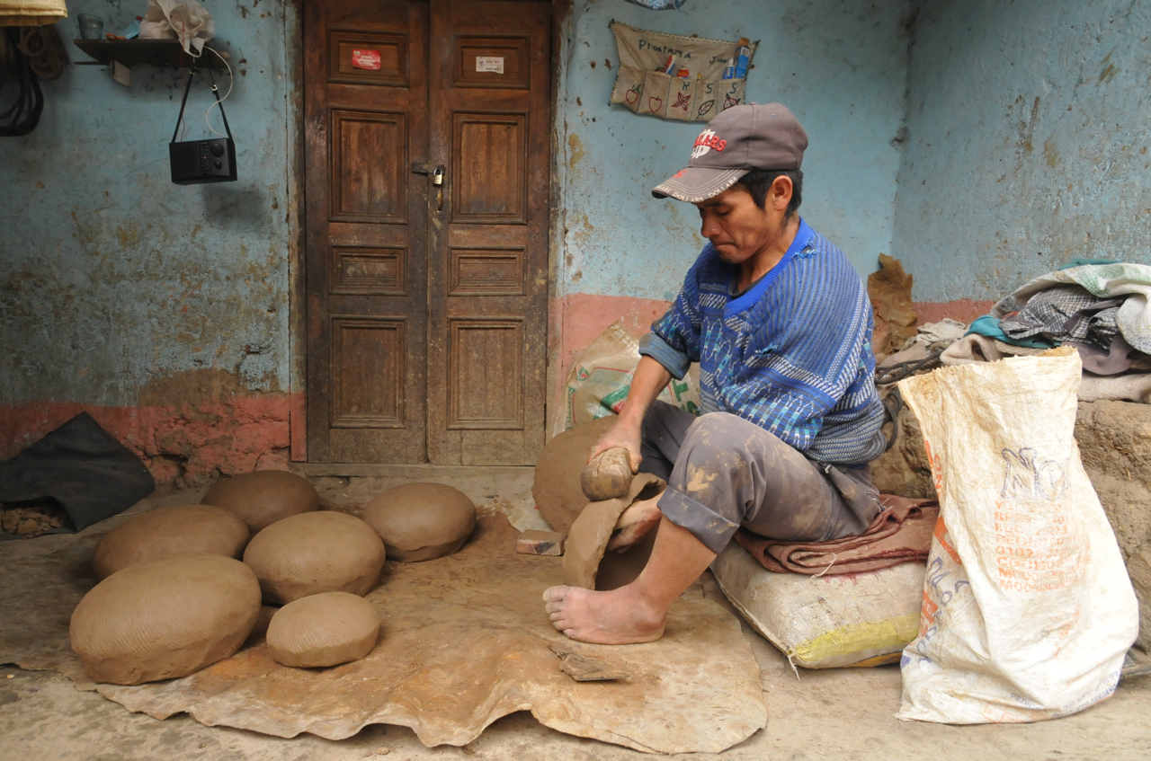 En la parte occidental de la zona hay dos técnicas: molde bivalvo horizontal de cerámica (Jangalá, San Miguel, foto 5) y paleteado con piedra auxiliado por los pies (Cuzcudén, San Pablo, foto 6). En Jangalá y Cuzcudén los alfareros eran hombres.