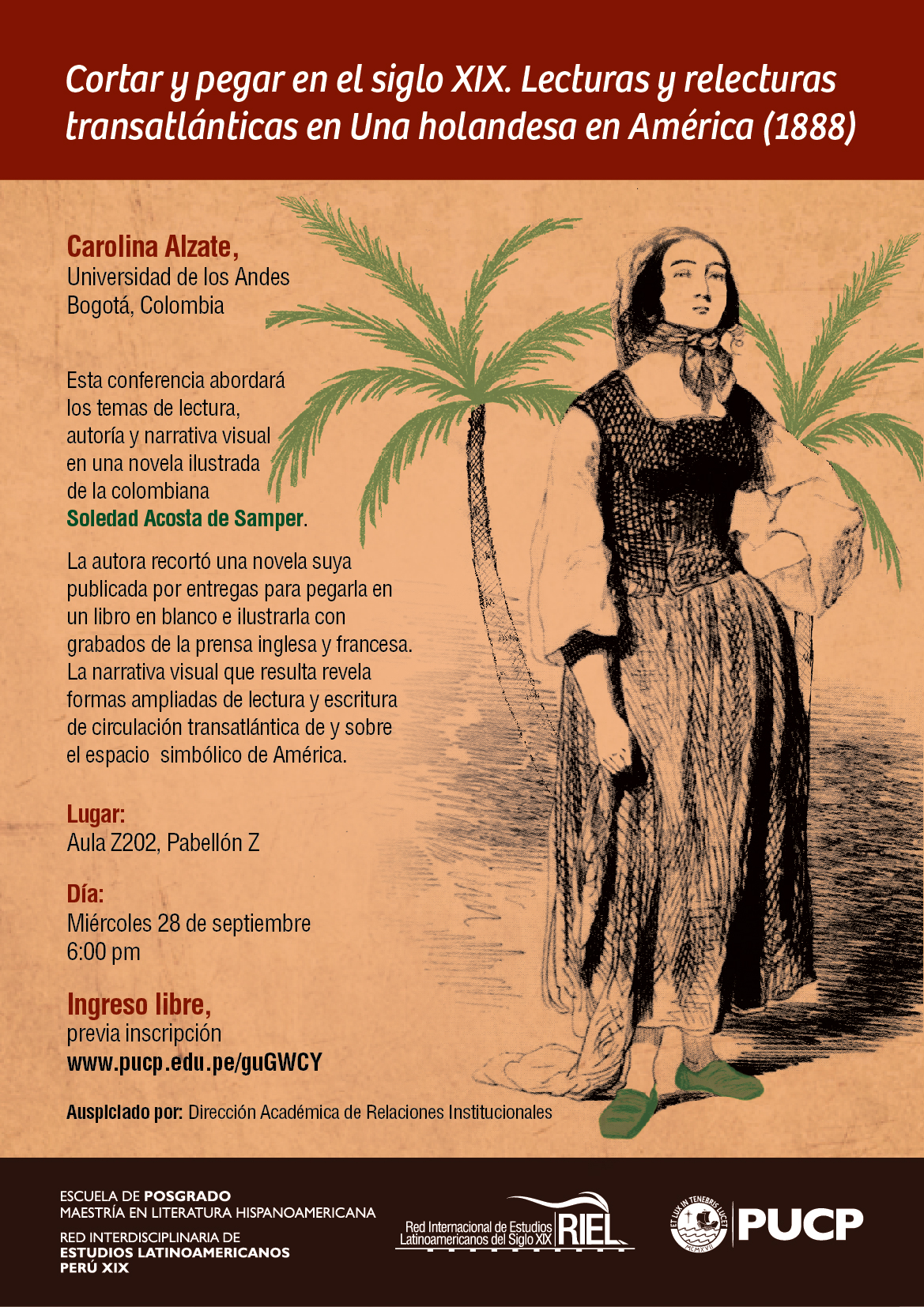 Los invito a participar en la conferencia Cortar y pegar en el siglo XIX. Lecturas y relecturas transatlánticas en «Una holandesa en América» (1888), que se realizará el día miércoles 28 de septiembre a las 6:00 p.m., en el aula Z202 del pabellón Z.