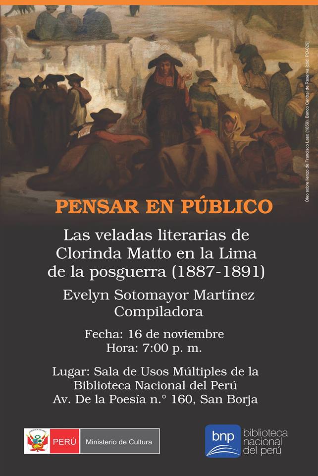 Presentación del libro Pensar en público. Las veladas literarias de Clorinda Matto en la Lima de la posguerra (1887-1891), de Evelyn Sotomayor (compiladora)