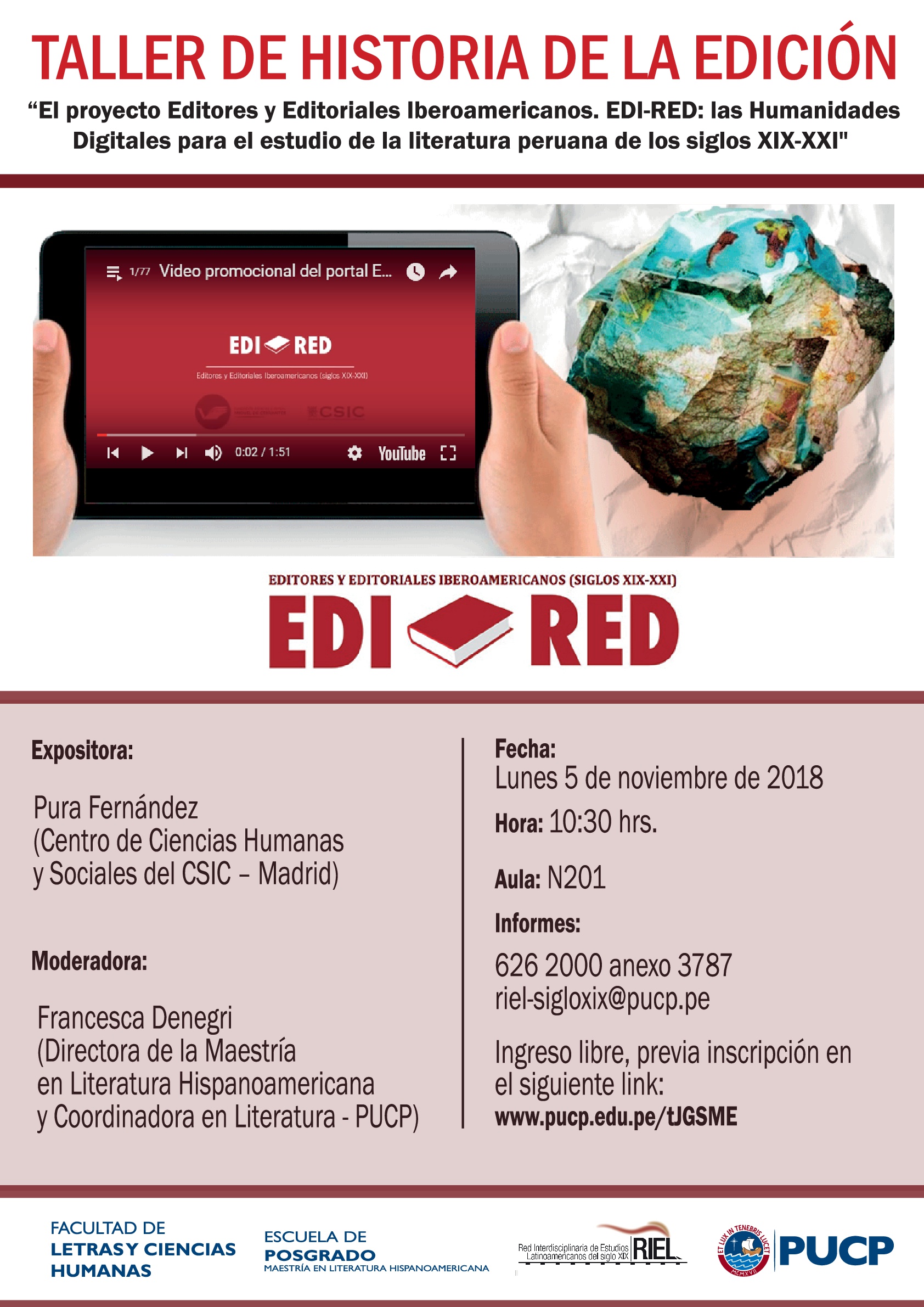 Título: “El proyecto Editores y Editoriales Iberoamericanos. EDI-RED: las Humanidades Digitales para el estudio de la literatura peruana de los siglos XIX-XXI”