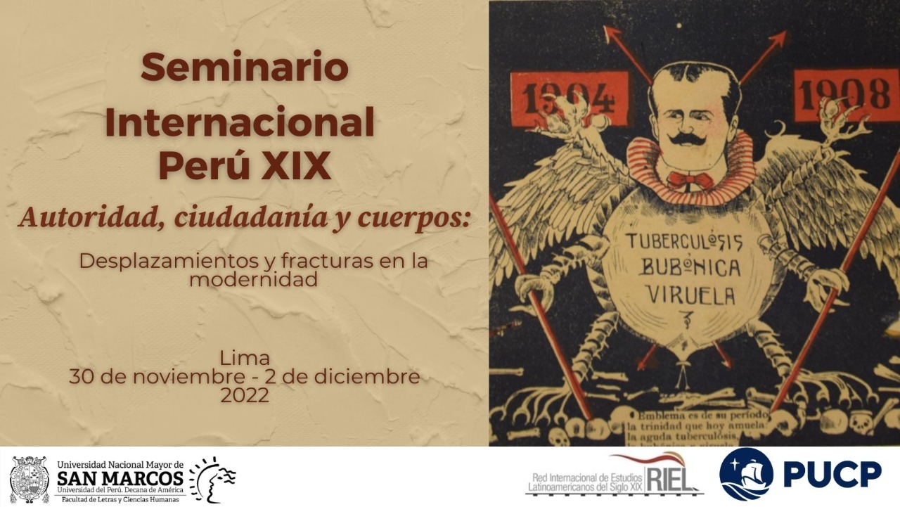 En el marco del bicentenario del proceso de la Independencia del Perú, este seminario busca ser un espacio de discusión y reflexión sobre el siglo XIX peruano y latinoamericano desde una perspectiva amplia y compleja que aborde temáticas vinculadas con el ejercicio de la autoridad y de la ciudadanía; las estrategias de vigilancia y control del cuerpo social; el rol de las y los escritores tanto en la formación de ciudadanos como en el imaginario colectivo de sociedad y república; las confrontaciones y resistencias a los saberes y poderes en vigencia en el momento; las representaciones y contestaciones a las violencias letradas y fundacionales y, por último, los diversos tránsitos a las modernidades (centrales, periféricas, accidentadas) planteados en un archivo heterogéneo de producciones escrito-visuales del periodo.