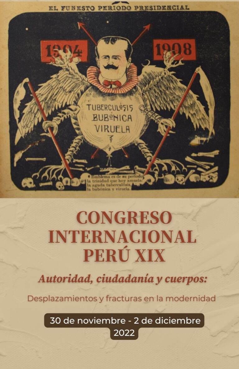 #CongresoPeruXIX Compartimos con ustedes el Programa Oficial del IV Congreso Internacional Perú XIX «Autoridad, ciudadanía y cuerpos: desplazamientos y fracturas en la modernidad», que se realizará de manera virtual del 29 de noviembre al 2 de diciembre del 2022. Este evento es organizado por la Universidad Mayor de San Marcos y la Pontificia Universidad Católica del Perú.